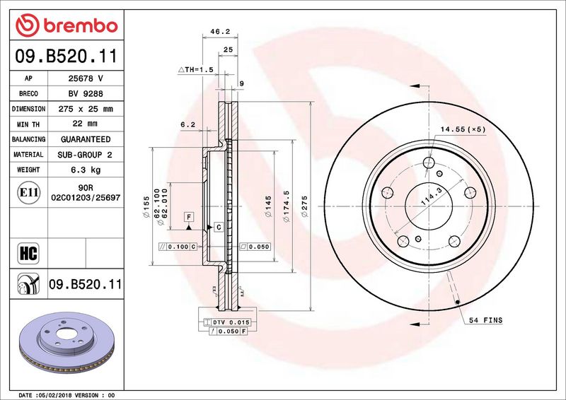 Diametro esterno [mm]: 275