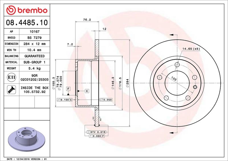 Disco freno - BREMBO - (08.4485.10)