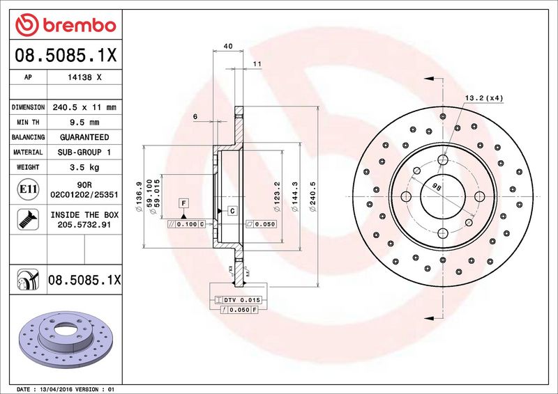 Disco freno - BREMBO - (08.5085.1X)