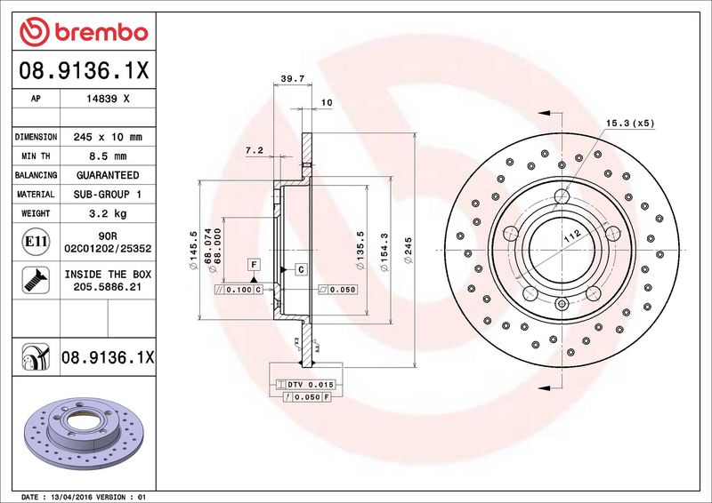 Disco freno - BREMBO - (08.9136.1X)