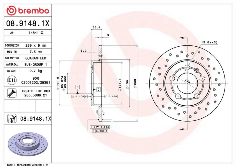 Disco freno - BREMBO - (08.9148.1X)