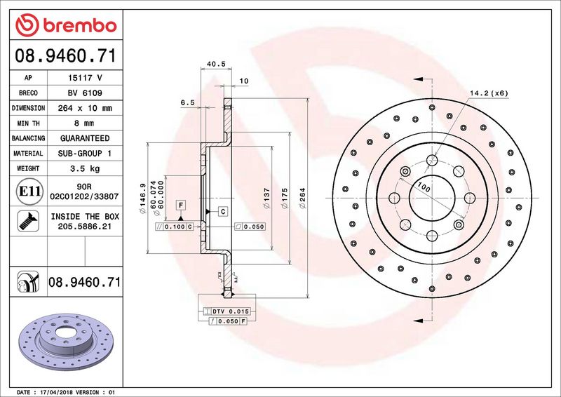 Disco freno - BREMBO - (08.9460.71)