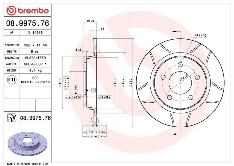 Disco freno - BREMBO - (08.9975.76)