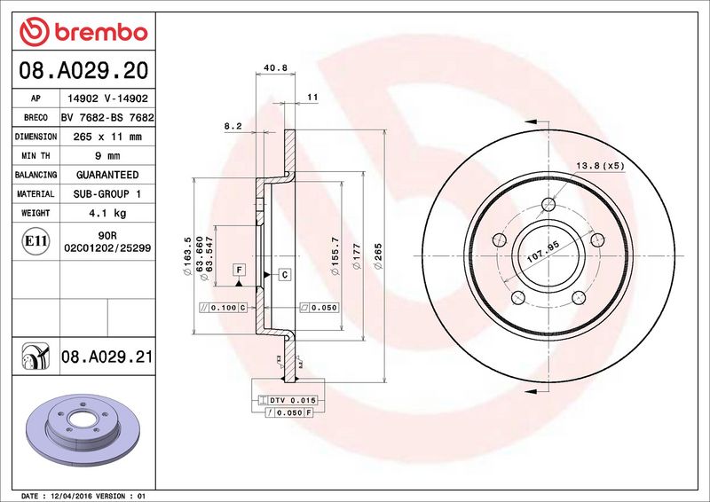 Disco freno - BREMBO - (08.A029.21)