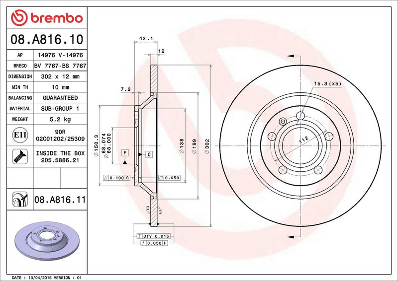 Disco freno - BREMBO - (08.A816.11)