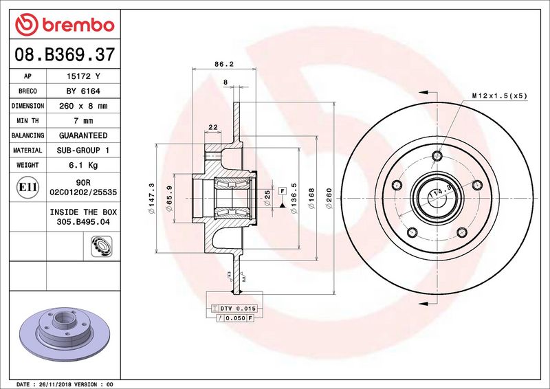 Ricambi Auto: 08.B369.37 - BREMBO - Disco freno