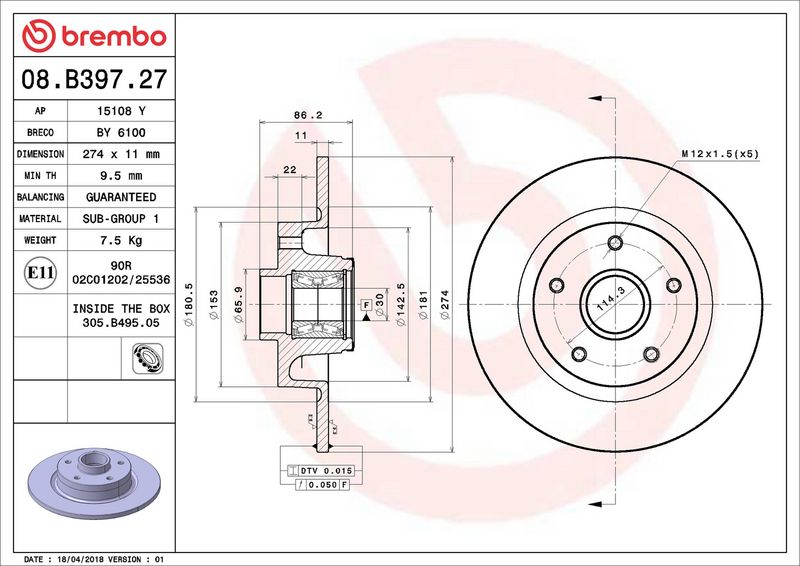 Ricambi Auto: 08.B397.27 - BREMBO - Disco freno