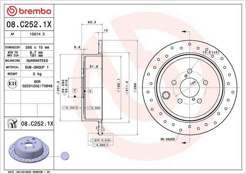 Disco freno - BREMBO - (08.C252.1X)