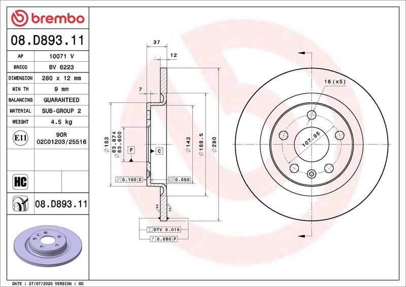 Disco freno - BREMBO - (08.D893.11)