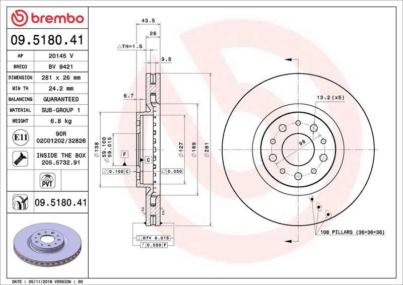 Disco freno - BREMBO - (09.5180.41)