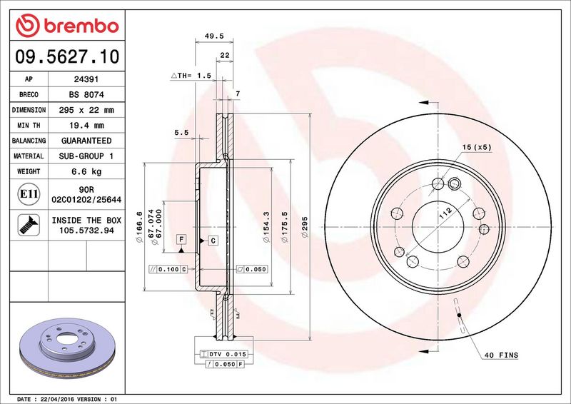 Disco freno - BREMBO - (09.5627.10)