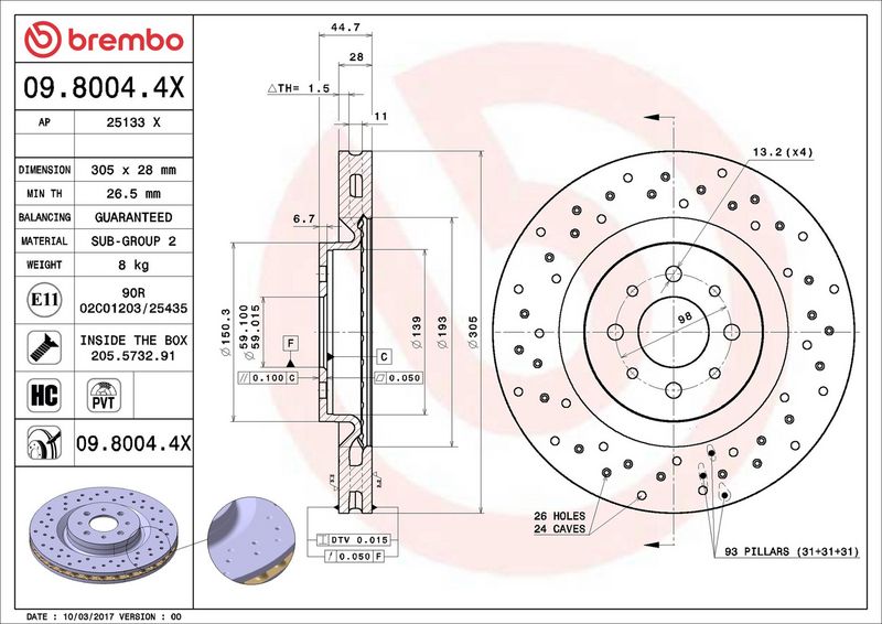 Disco freno - BREMBO - (09.8004.4X)