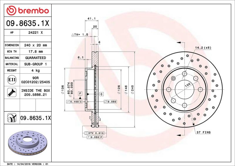 Disco freno - BREMBO - (09.8635.1X)