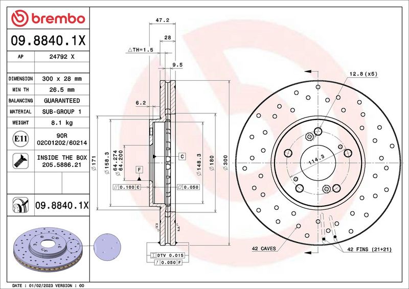 Ricambi Auto: 09.8840.1X - BREMBO - Disco freno
