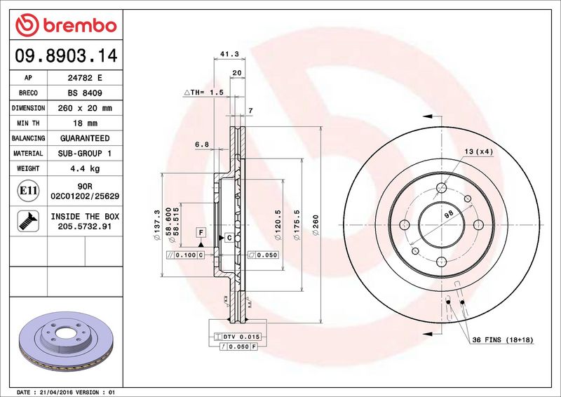 Ricambi Auto: 09.8903.14 - BREMBO - Disco freno