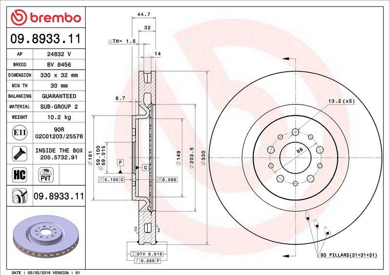 Disco freno - BREMBO - (09.8933.11)
