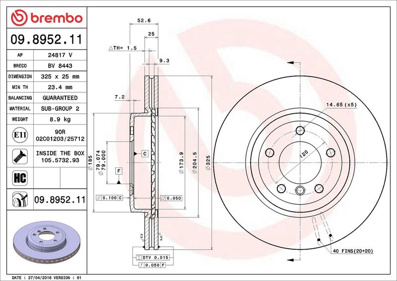 Disco freno - BREMBO - (09.8952.11)