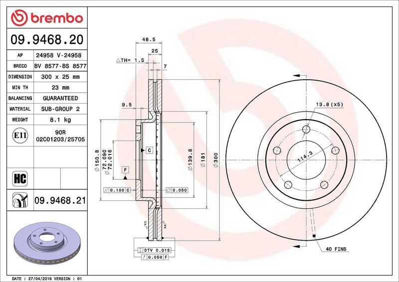 Spessore disco freno [mm]: 25