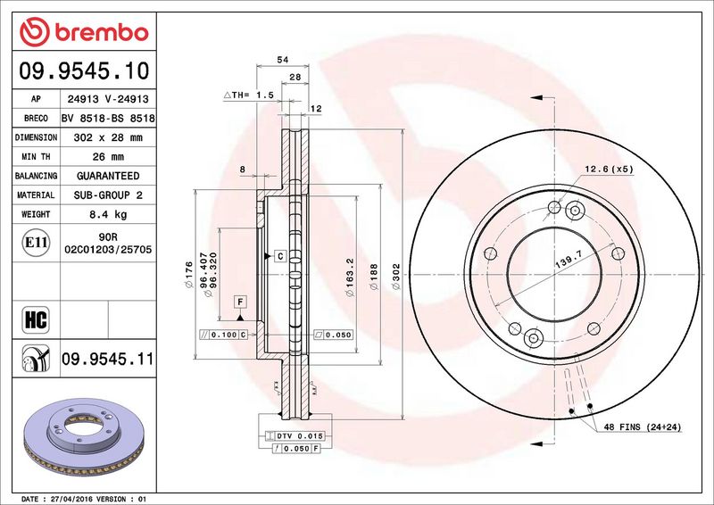 Disco freno - BREMBO - (09.9545.10)