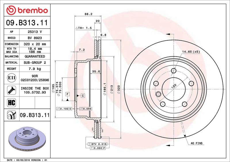 Disco freno - BREMBO - (09.B313.11)