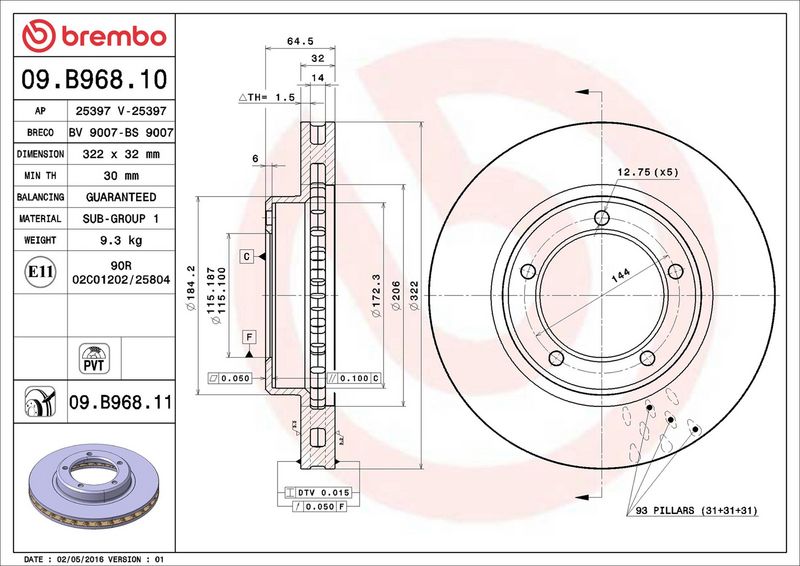 Disco freno - BREMBO - (09.B968.11)