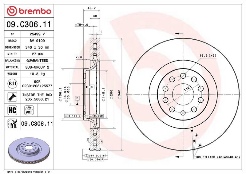 Disco freno - BREMBO - (09.C306.11)