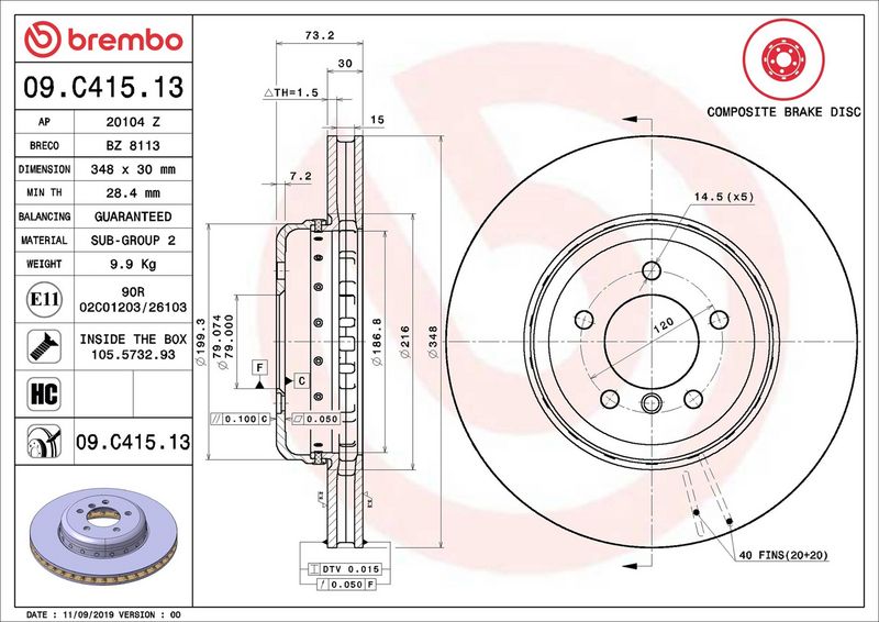 Ricambi Auto: 09.C415.13 - BREMBO - Disco freno