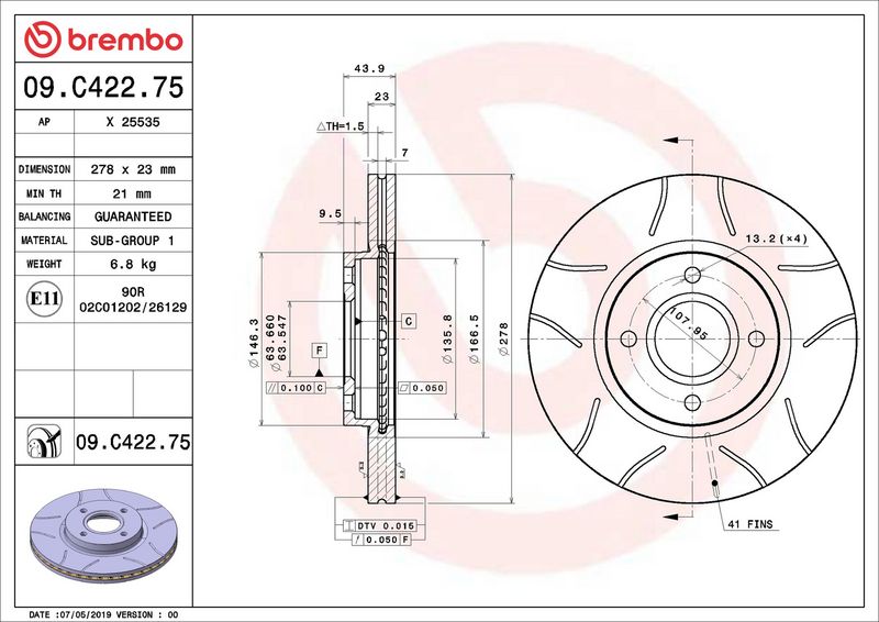 Disco freno - BREMBO - (09.C422.75)