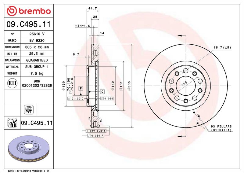Disco freno - BREMBO - (09.C495.11)