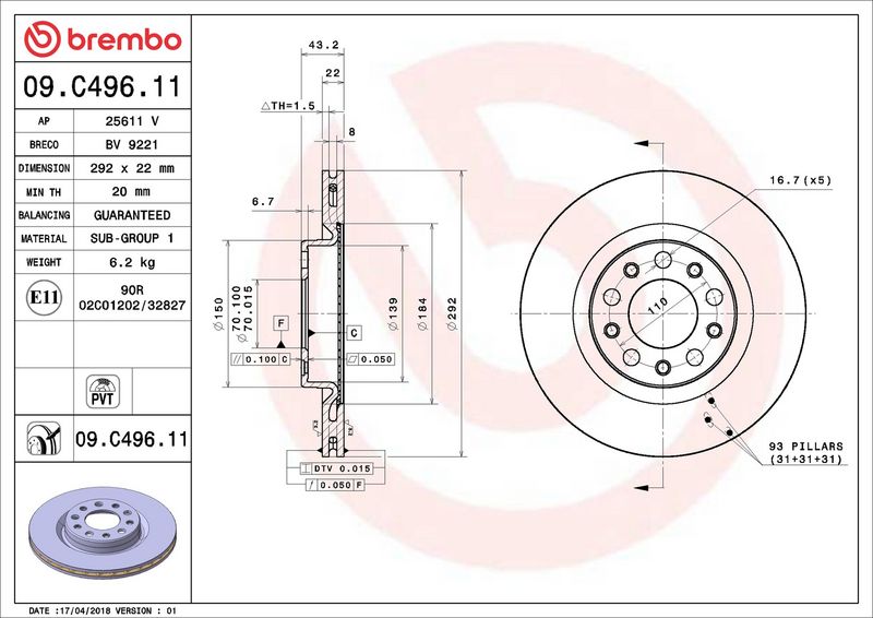Disco freno - BREMBO - (09.C496.11)
