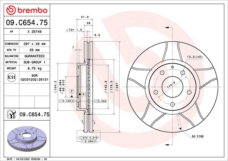 Disco freno - BREMBO - (09.C654.75)