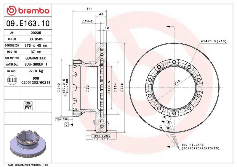 Ricambi Auto: 09.E163.10 - BREMBO - Disco freno