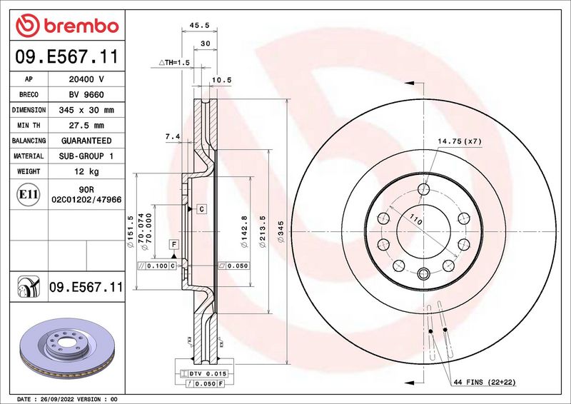 Disco freno - BREMBO - (09.E567.11)