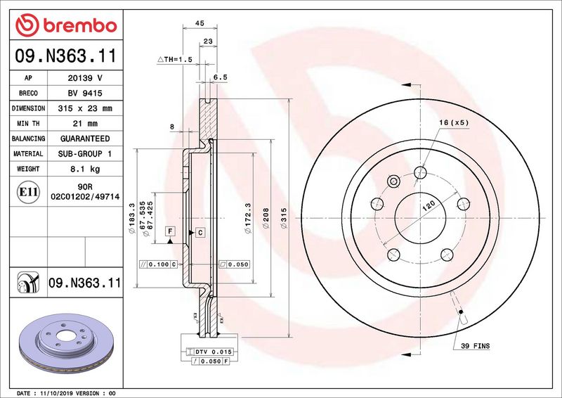 Disco freno - BREMBO - (09.N363.11)