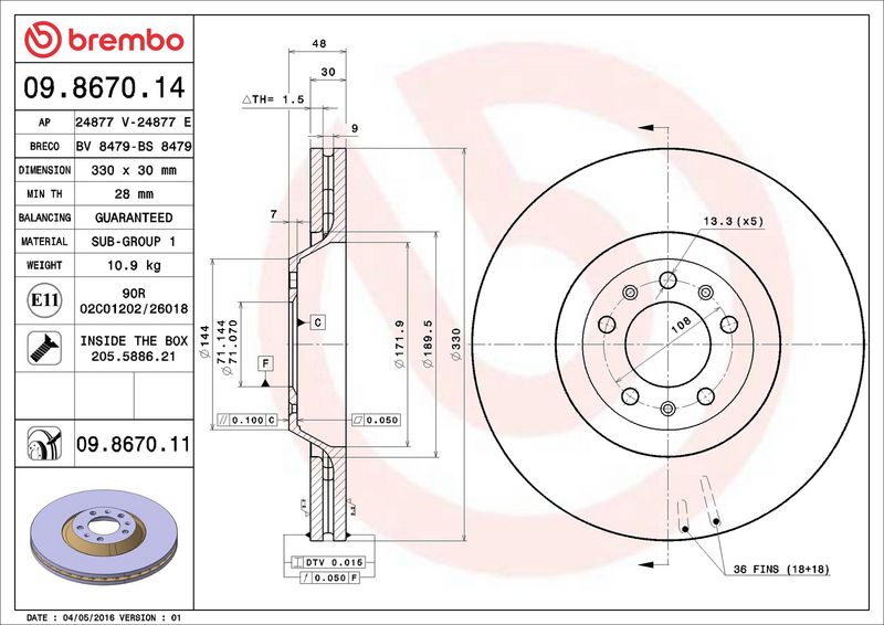 Marchio controllo: E1 90R-02C0289/1699