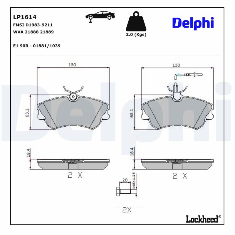 Kit pastiglie freno, Freno a disco - DELPHI - (LP1614)