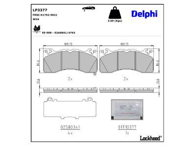 Ricambi Auto: LP3377 - DELPHI - Kit pastiglie freno, Freno a disco