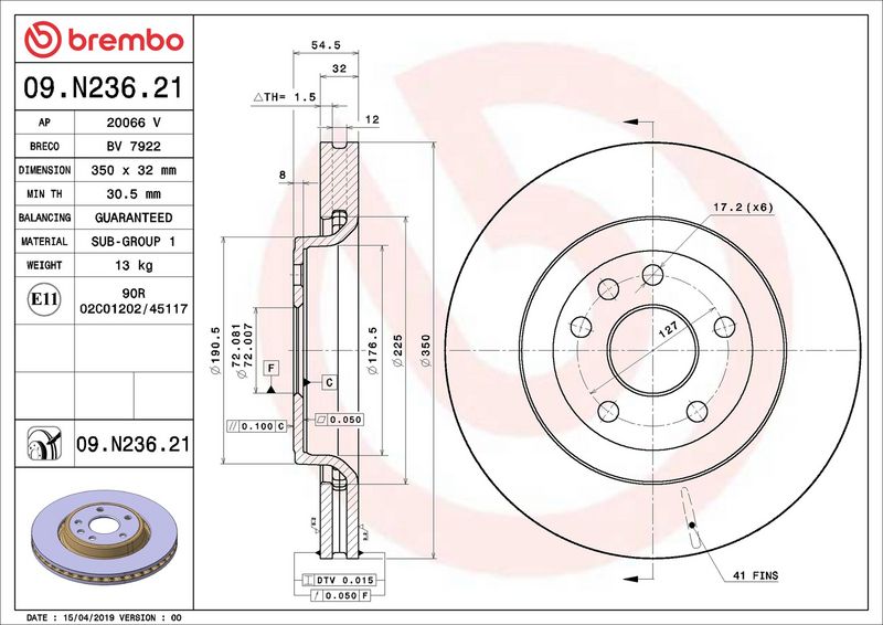 Spessore disco freno [mm]: 32