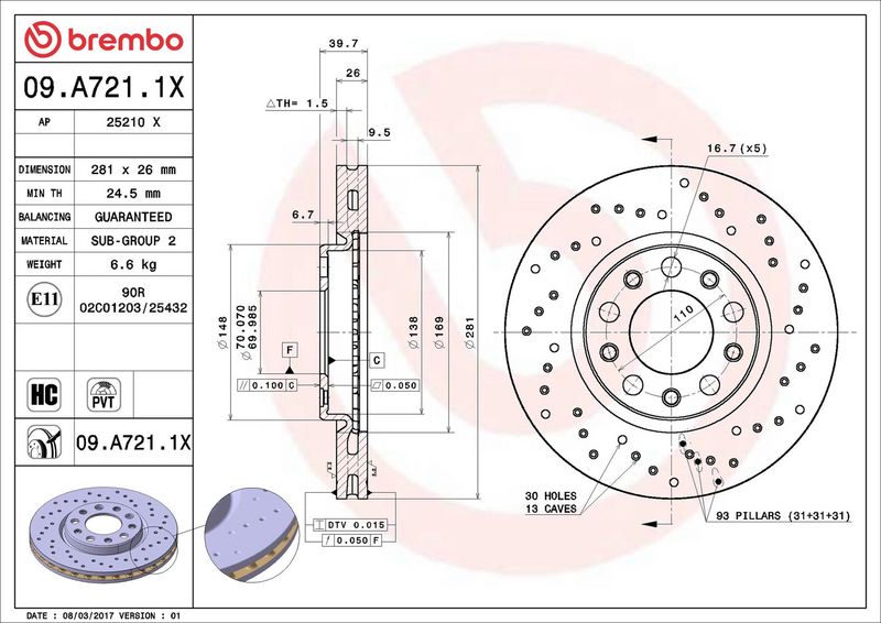 Tipo disco freno: ventilazione interna